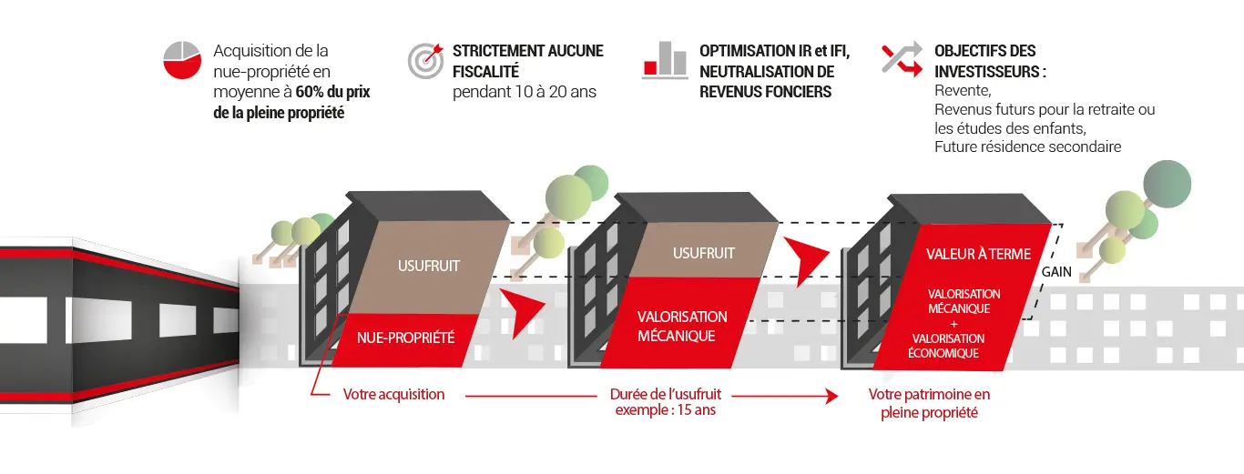 L’investisseur bénéficie d’une double valorisation de son investissement : la récupération automatique de la pleine-propriété à l’échéance et la revalorisation économique du bien