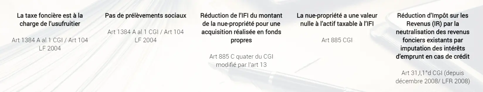 Une fiscalité très favorable : AUCUNE IMPOSITION sur toute la durée du démembrement